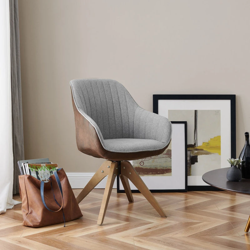 Art-Leon chic style and comfortable accent armchair will become a classic focal point of your home with its fashion minimalist design. New upgraded swivel accent chair with arms, can spin it 360°. The roomy depth and wide seat optimize comfort. Comfortable sitting experience, firm and well-cushioned with an ample seating space. You can curl up or sit cross-legged to read, enjoy lengthy conversations, or simply work. The comfortability makes it easy to sit for a long time. Mid-Century modern style makes the perfect match for most home décor while catching your guests’ attention. Four beech wood legs finished with walnut lacquer extend outward from the swivel base. Upholstered in polyester cotton fabric, exquisite tailoring with a design worth celebrating. Great for your living room, dining room, bedroom, office, study, or makeup vanity. Attractive enough for any room!