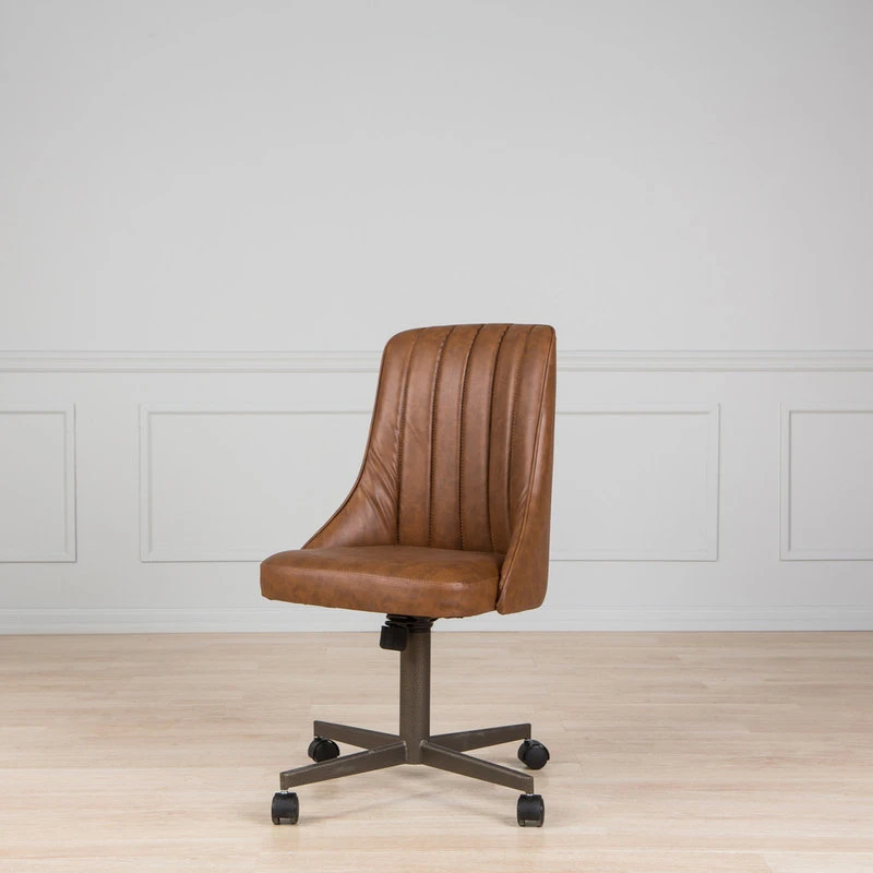 Get your desk work done in classic style with the Caster Swivel Office Chair. Upholstered in a rich brown faux leather, with a ribbed back and padded seat, this chair will a bring an old-school, midcentury vibe to your home office. Able to swivel and roll, the Caster chair offers convenience and comfort, so you can focus on finishing that paperwork.