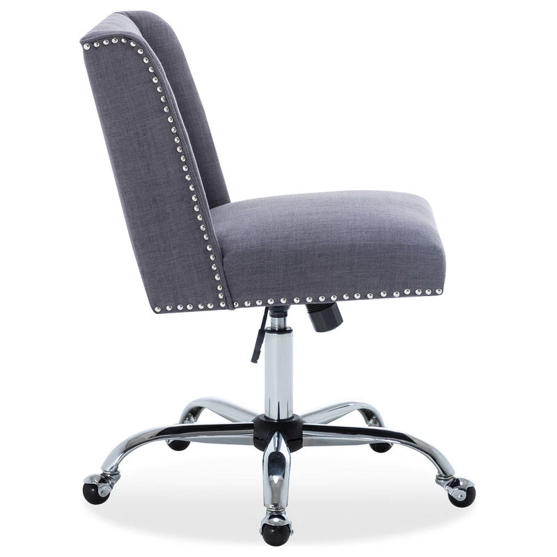 Enhance your productivity with this ribbed office chair by Belleze. The clean design with chrome accents creates a professional atmosphere in your office. The fabric upholstery adds a luxurious feel while the padding underneath provides comfort while you work. With its pneumatic gas system the chair allows for smooth adjustments to a variety of desk heights. Move about easily and efficiently due to the five castors at the base of the chair.