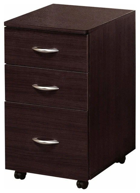 Benzara, Woodland Imprts, The Urban Port BM148328 Marlow File Cabinet With 3 Drawers, Espresso Brown