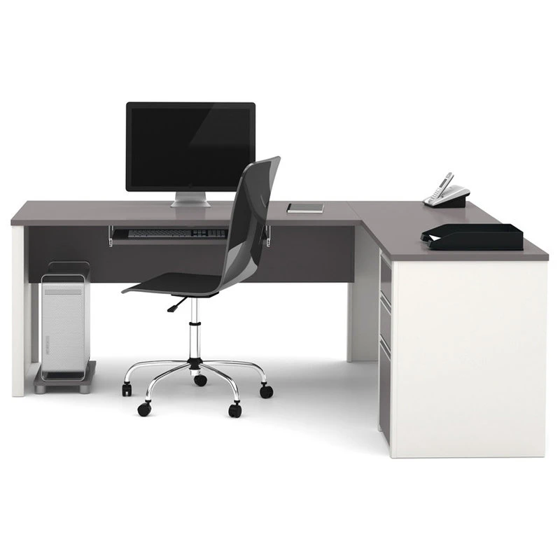 Connexion is a contemporary and durable collection that features a wide variety of configuration options that will adapt to your specific needs. The desk is made of durable 1″ commercial grade work surface with melamine finish that resist scratches, stains and wear. It features an impact resistant thick PVC edge. Grommets are available on the station for efficient wire management. The credenza and the return table meet or exceed ANSI/BIFMA performance standards. The pedestal offers two utility drawers and one file drawer with letter/legal filing system. One lock secures bottom two drawers. The drawers and the keyboard shelf are on ball-bearing slides for a smooth and quiet operation. The station is fully reversible. Also available in Bordeaux and Slate finish.