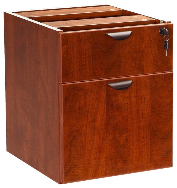 The 3/4 pedestal features a file and box drawer. It can be used with any of the series desk shells Finished in Cherry laminate.