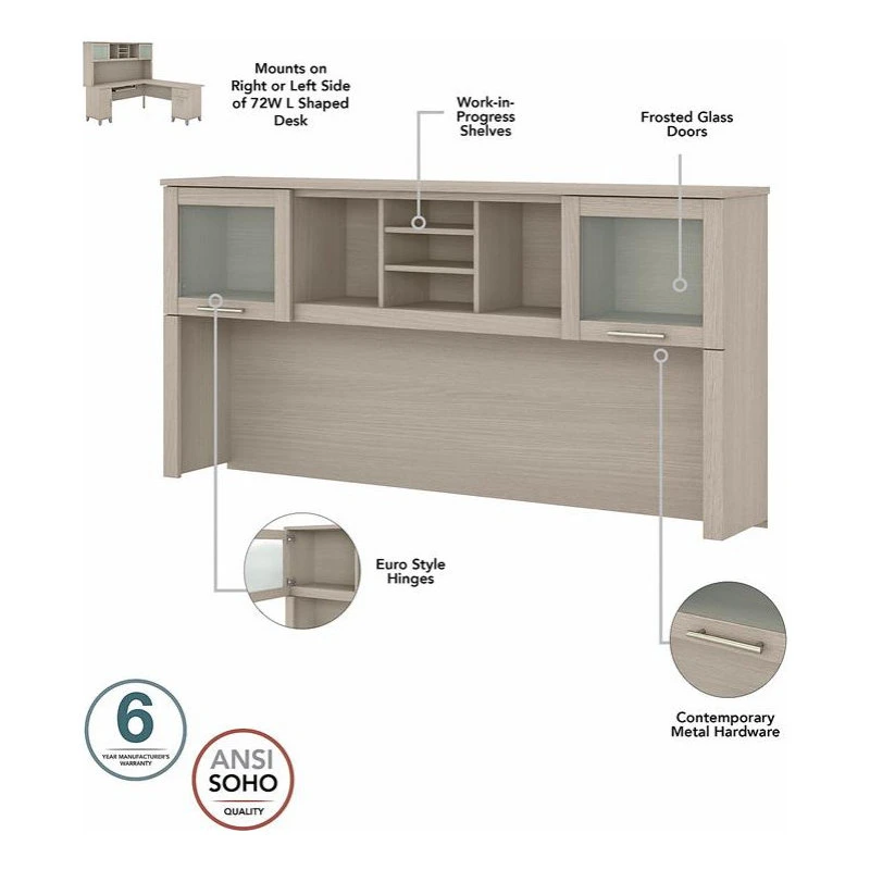 - Product Dimensions : 72W Hutch for L Desk: 71.00″W x 12.65″D x 35.81″H
