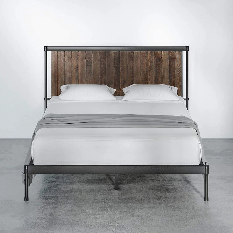 - BEAUTIFULLY CRAFTED – Modern-industrial design features 100% solid wood with striking natural wood grain on a wood paneled headboard with rounded metal framework