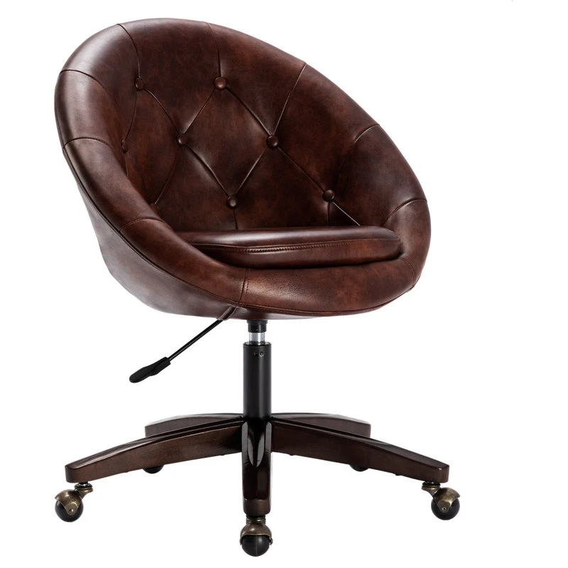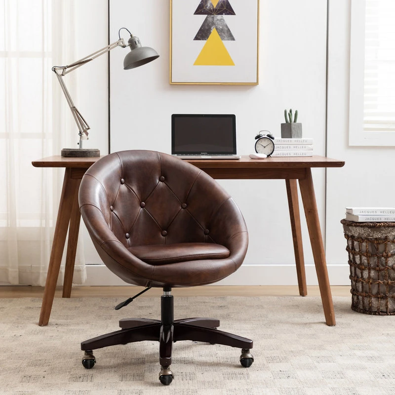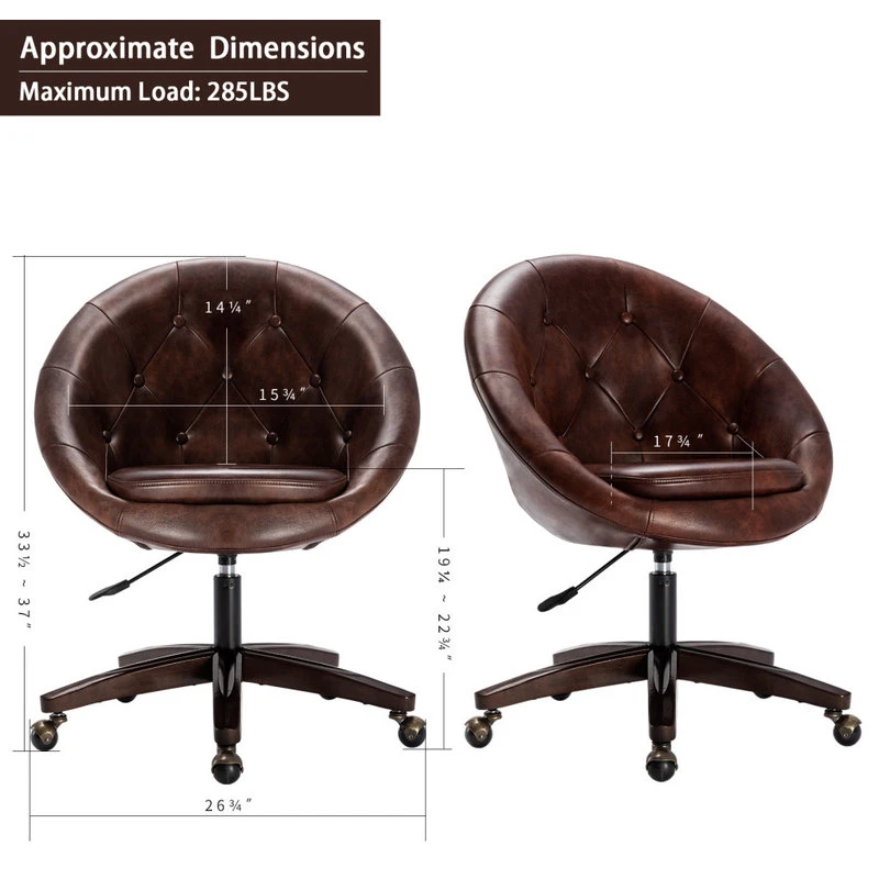 Need a design statement to create an ideal home office as decent as your personality? Try our Mid-Century Faux Leather Rolling Chair! With classic button tufting over plenty of cushions, our rolling chair is sure to soothe your back, while you’re leaning against it. Plus, 360-degree swivel design with easy-rolling casters makes it effortless from one project to the next. Also raise or lower the lever for the best postures, so you can stay focused at work rather than struggle with any body pain.