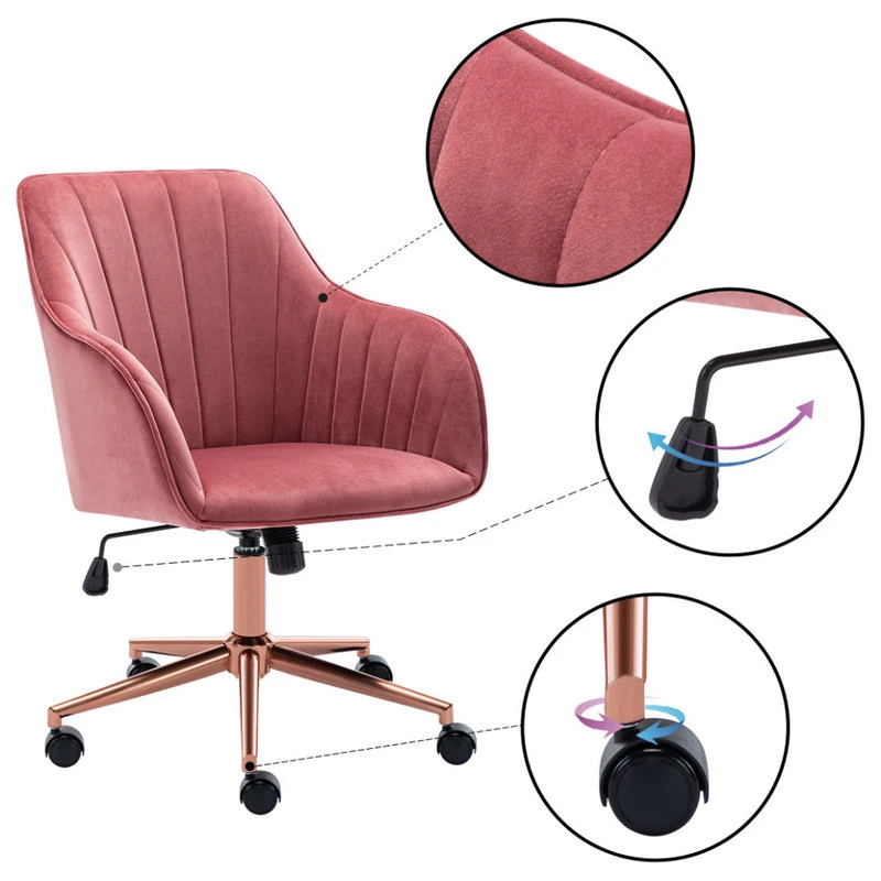 Stay sedentary? Need some support? Your back will thank you for the supportive comfort our Sloped Arms Velvet Computer Desk Chair provides. Distinctive vertical tufts on the skin-friendly velvet upholstery give our task chair the pride of place in your working area, while the easy-rolling casters make moving around a breeze to further double your efficiency. A must-have addition to boost your work.