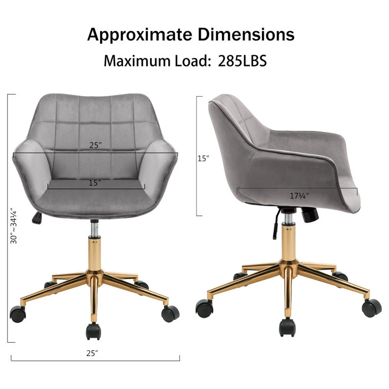 Sitting in a stylish desk chair this cozy makes the working days go by quicker. Our Square Tufted Velvet Home Office Chair isn’t purely focused on comfort. Featured with classic vertical and horizontal tufts on the back, our task chair showcases some avant-garde art of lines and is destined to make a big impact with gold-finished legs.