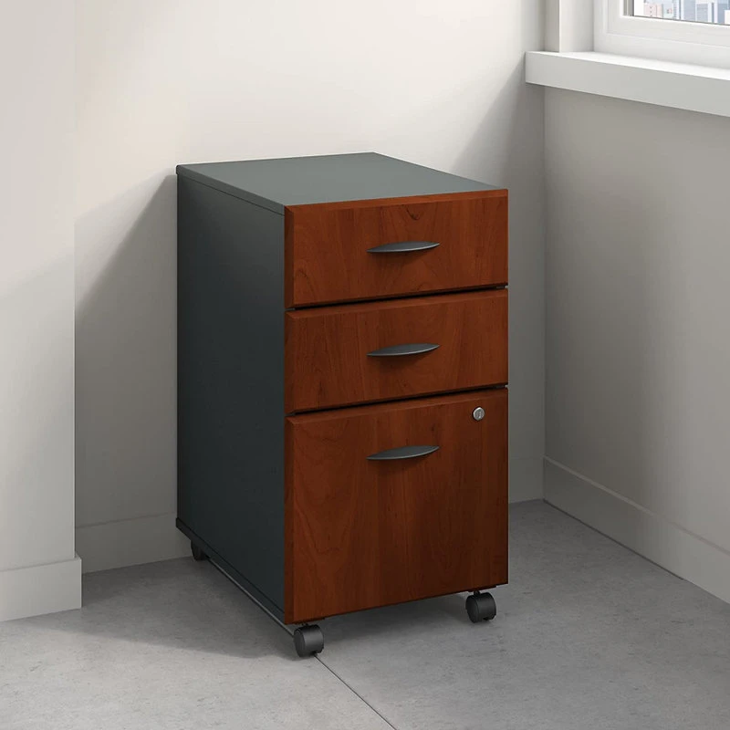 EFurnish Filing Cabinet, Mobile Design With 3 Lockable Drawers, Hansen Cherry/Galaxy