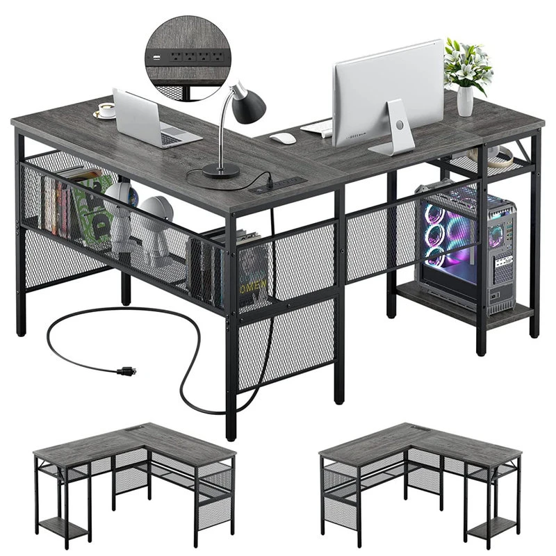 - The L-shaped computer desk is built in 3 USB charging ports and 2 outlets for your phone, Bluetooth, headset, tablet, power bank, gaming gear with fast charging, which provides a great convenience to your life when you are working or playing games.
