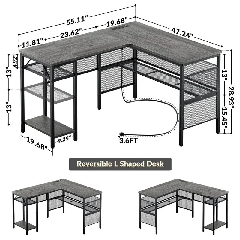 - With reversible design, the L-shape desk is configured either on the right or left side as your personal preference. The height of storage open shelves can be adjustable. You can also choose the suitable height as your needs.