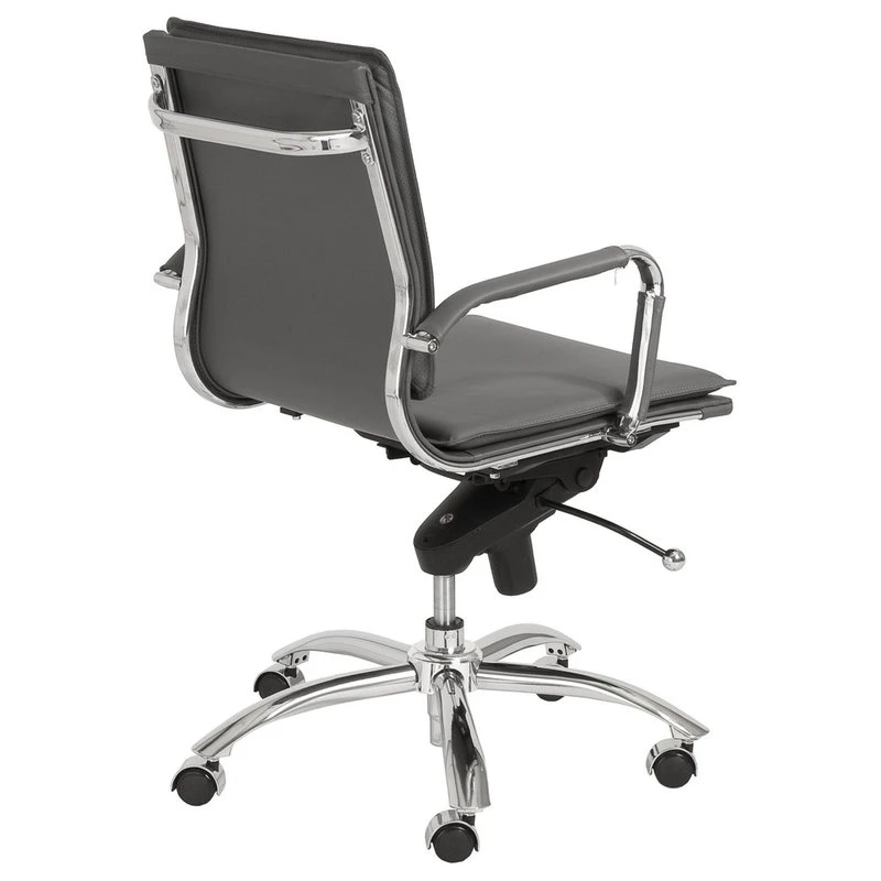 The five-leg pedestal on wheels is reliable and sturdy no matter how you roll. The rest is pure style. The feel of leather and the easy-to-use tilt mechanism are perfect when you want to lean into your work in comfort.
