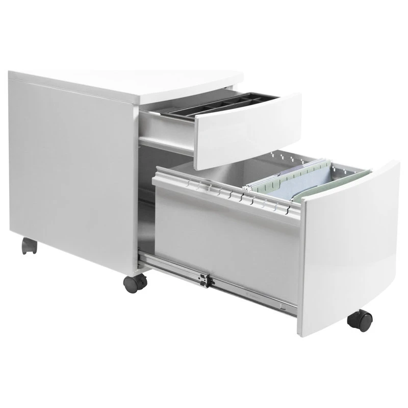 Ingo Filing Cabinets keep your office sleek and organized. Made of durable powder-coated steel, the lower file drawer fits American Letter and B4 size paper, and the upper drawer stores supplies in one neat and tidy place. Five casters allow for easy
