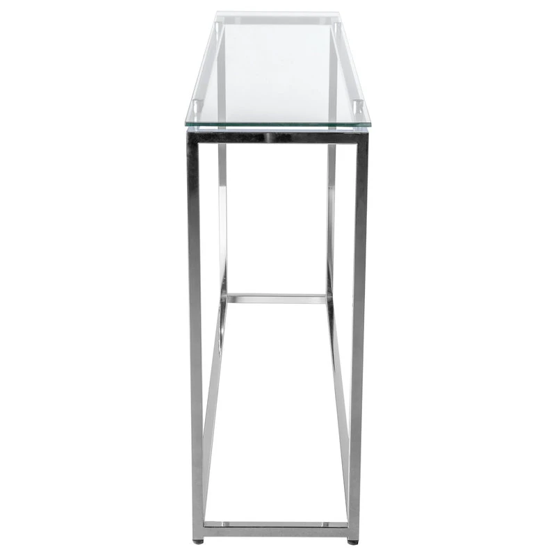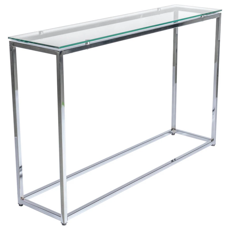 SKU: 28021CLR Category: Console Tables Tags: And, Chrome, Clear, Conosole, Frame, Glass, Long, Sandor, Table, Tempered, Top, With