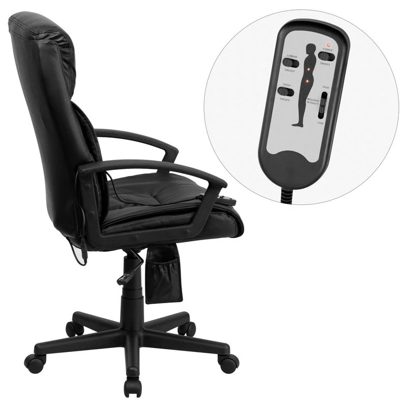 High Back Massaging Black Leather Executive Swivel Office Chair [BT-9578P-GG] 26″W x 28″D x 40″ – 43.50″H