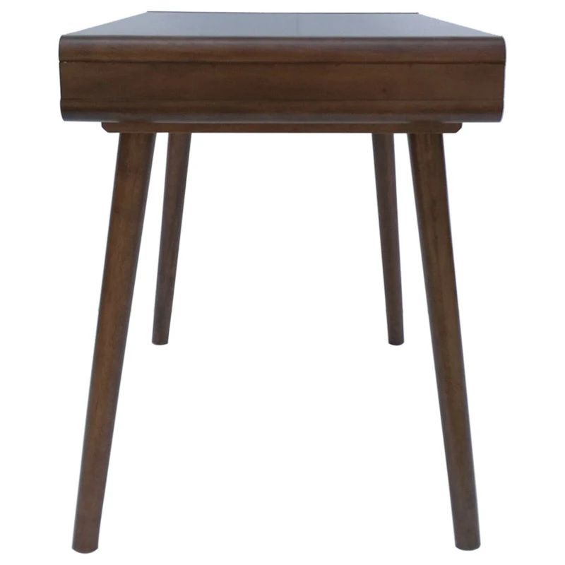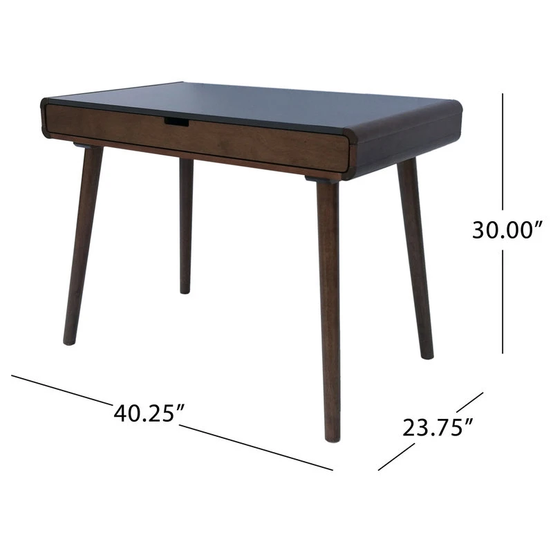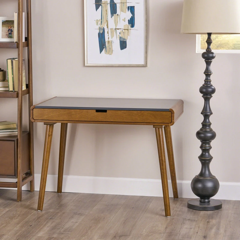 This mid century desk is the perfect addition to any home office or student room. This wooden desk features a large drawer in the center of the desk, ideal for storing anything from writing tools to chargers. Large enough to fit a computer and papers, this desk is sure to be everything you are looking to add to your home office.