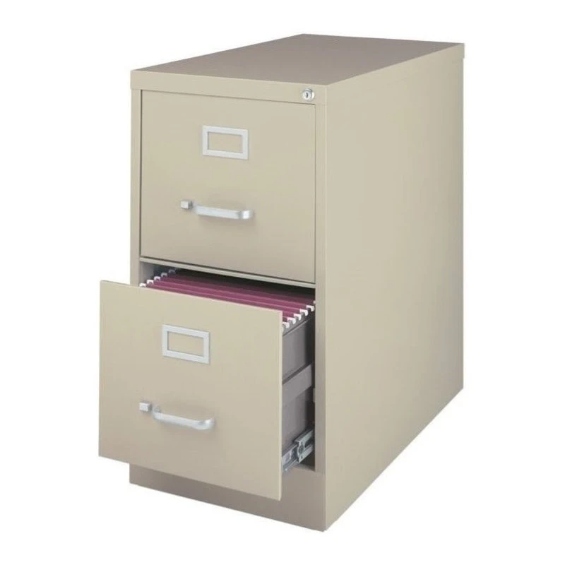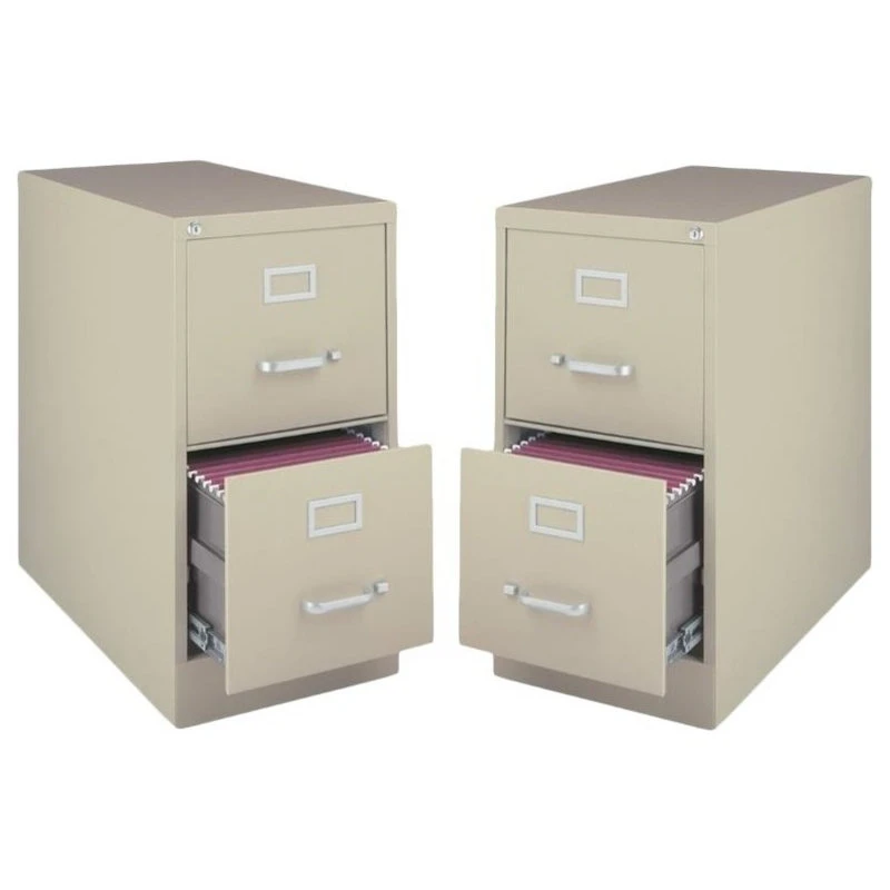 - Hirsh 25 in Deep 2 Drawer Vertical Letter File Cabinet in PuttyCommercial grade vertical file cabinets available in a range of sizes and colors are the ideal office workhorse to maximize your organizational needs. Constructed of durable steel, these file cabinets are built to withstand frequent use. No assembly required. Includes follower blocks, aluminum handles, label holders and a core removable lock so multiple cabinets can be keyed alike. Baked enamel finish and galvanized drawer bodies. Limited Lifetime Warranty.