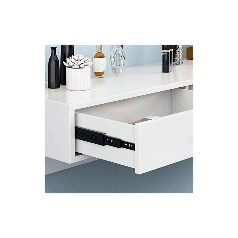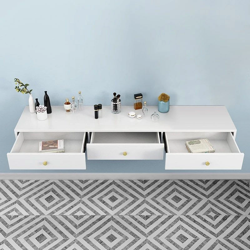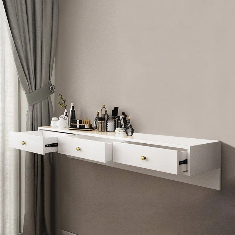 Outfit your bedroom with this simple yet practical writing desk. Featuring a wall-mounted design, it is space-saving and frees up your space. Multiple drawers provide ample storage for pens and other office necessities. Otherwise, it may arrive with a cabinet with drawers to offer extra storage. Lacquer tabletop is easy to clean. The perfect balance of utility and style in your ensemble.