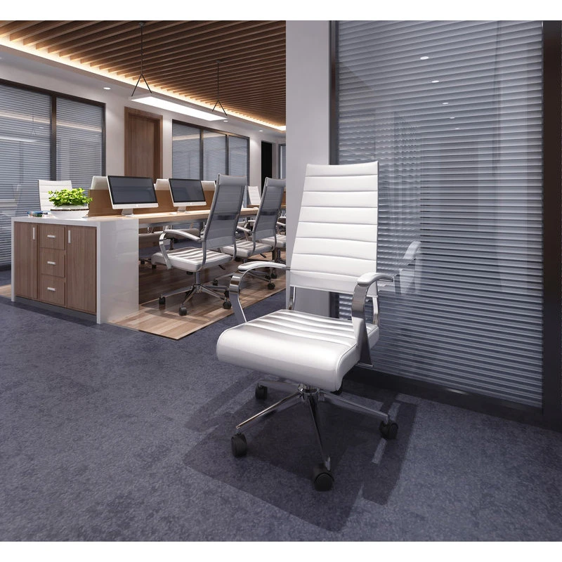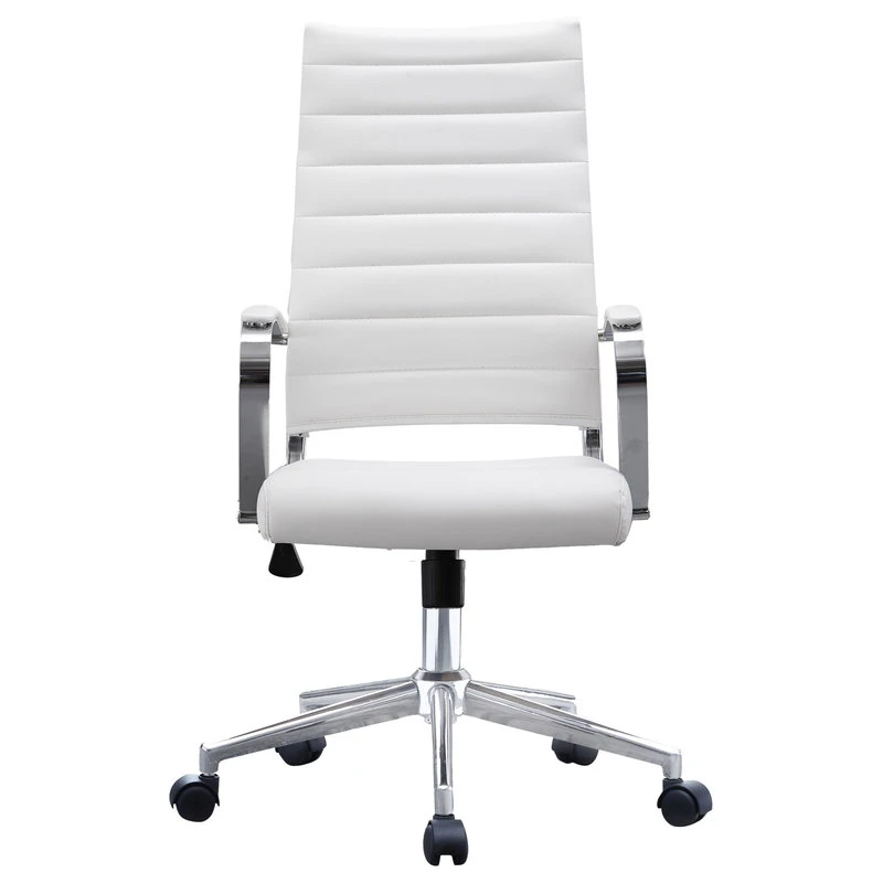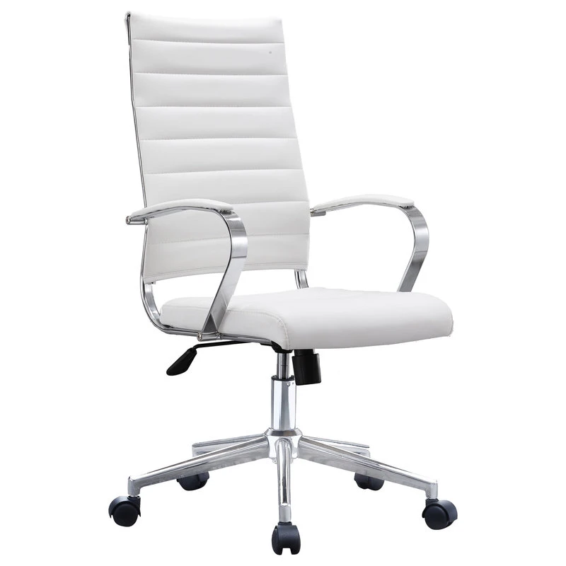 Homedotdot Ergonomic High Back Swivel Boss Ribbed PU Leather Office Chair Modern, White