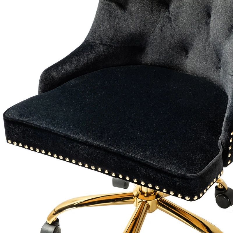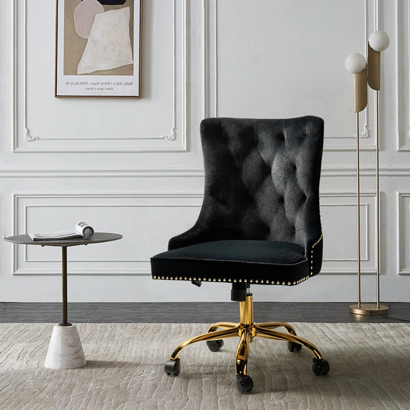 Add a touch of contemporary elegance to your space with a design that is equally functional and stylish. This modern swivel office chair is a wonderful addition to any office or home office with its variety vibrant colors-velvet fabric upholstery that blends with any design taste. With an armless, wide seat, this chair will become the most comfortable chair in your home or office. Designed in a chic style with luxury modest nailhead trim, tufting and piped edges lend a tailored touch, while foam fill offers comfort and support. The chair’s base includes a swivel mechanism, tilt angle adjustable, and a lever-operated lift to adjust the seat height and angle. Sturdy and durable metal base and 360-degree wheels allow you to glide to anywhere in the room, height-adjustable to tailor your professional space. The cute task chair is ideal for any casual or professional working area. It provides comfortable support with a cozy and convenient design.