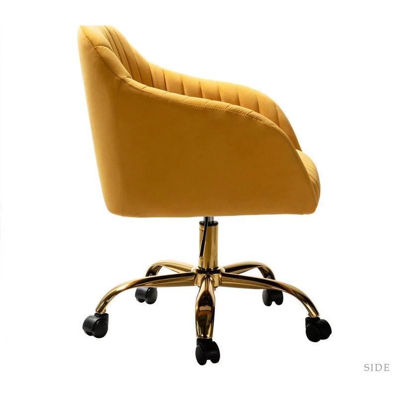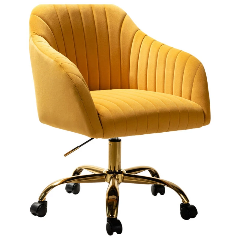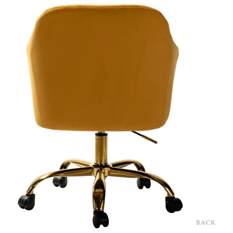 This Modern swivel office chair is a wonderful addition to any office or home office with its variety vibrant colors- velvet fabric upholstery that blends with any design taste. Featuring extra plush seating with a stylish lightly tufted seat back and very attractive color of velvet fabric. This chair will have you feeling as if you are sitting on clouds. This chair will become the most comfortable chair in your home and office. Down below, it includes five casters for easy transport. Includes a pneumatic lever for adjusting the height. Whether used in the home office or workplace cubicle,this office chair is a must-have for anyone who works long hours from a sitting position. Offering the appeal of mid-century inspired decor to your abode.