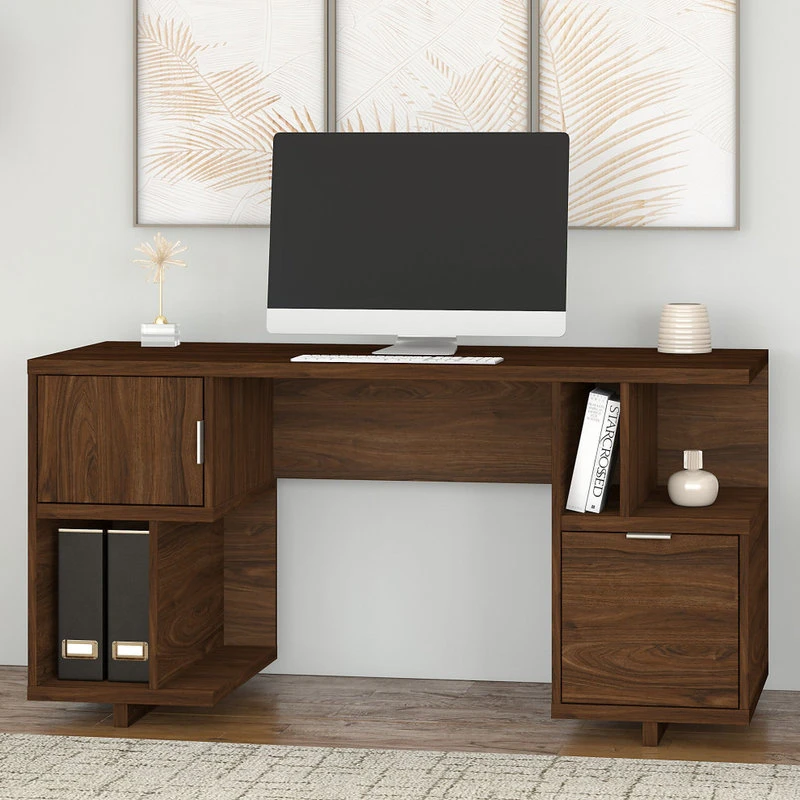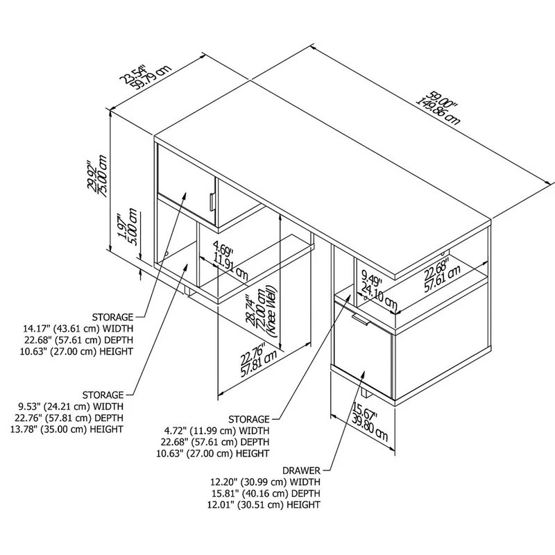 The stylish and progressive kathy ireland® Home by Bush Furniture Madison Avenue 60W Computer Desk with Drawer, Storage Shelves and Door offers a practical workspace with modern flair. An ideal solution for home offices, the durable 60W x 24D desktop provides plenty of room to spread out with a computer, paperwork and more while supporting up to 200 pounds. The asymmetrical design includes a file drawer and a cabinet to ensure that the materials you need are always within reach. Two vertical cubby spaces organize books and binders while open shelving offers additional storage space. The Computer Desk is finished on all sides to look great facing any direction. Find the perfect style for your work or living space with three finish options. This home office desk with storage is tested to meet ANSI/SOHO quality standards for safety and performance and is backed by a 3 Year Warranty.