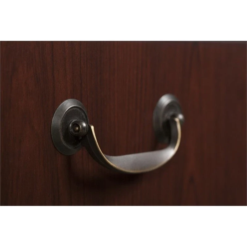 A storage staple of the Bennington collection, the 2 Drawer Lateral File from kathy ireland® Office by Bush Business Furniture provides room to spare. Two large file drawers accommodate letter, legal, or A4-size files and operate on full extension ball bearing slides for easy reach to materials and a smooth open and close. For added security and safety, the upper drawer locks with key while an anti-tip feature prevents both drawers from being open at the same time to reduce chance for tipping. The rich Harvest Cherry finish, antique brass pulls and decorative edge detailing convey a sense of tradition and old-world charm that you will love for years to come. The height of the Lateral File matches to coordinating Bennington Desks (sold separately). Bring a sense of timeless style and tradition into your home or workspace with this and other products from the Bennington Collection, all backed by a 6 year manufacturers warranty.