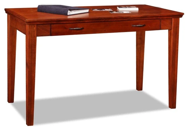 The Leick Westwood Cherry Laptop/Writing Desk is perfect for laptops or to hide away papers or a desktop keyboard, this delicately scaled desk offers abundant organization assistance in just a tiny space. The drop down front presents the keyboard at a comfortable work height while full extension drawer guides offer the full depth of the drawer as useable storage space. Solid wood construction with wood veneers offers exceptional durability while the hand applied multi-step cherry finish lets the natural beauty of the wood to shine through. Add the Leick Westood Cherry End Table/Printer Stand for a complete office solution.
