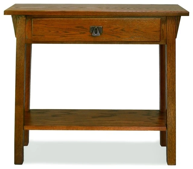 Do you have a narrow hallway or landing that needs that special something? The attractive Leick Mission Console Oak Table/Hall Stand is a perfect solution for this small space. A narrow 10 inch footprint allows this table to fit in tight spaces and brings beauty and functionality to your home. A rich hand applied multi-step Russet finish accentuates the natural beauty of the wood grain and solid wood construction ensures many years of enjoyment. The wide table top, storage drawer and lower display shelf offers a home to entryway storage, your favorite lamp and decor item.