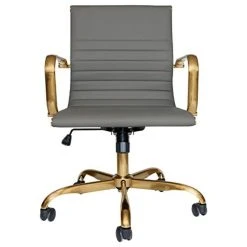 LeisureMod Harris Office Chair With Gold FrameSleek and contemporary, the Harris soft pad chair adds style to just about any setting while providing the user with a functional and comfortable seat. The chair’s clean, contemporary lines enhance any dcor and work well in your office, conference, home, college, reception desk, etc. The chairs Gold steel base is fitted with five dual-wheel casters, while a tension knob and tilt lock allow for easy back position adjustments. This is a chair made for the modern office and a welcome embodiment of the spirit of progress and determination.