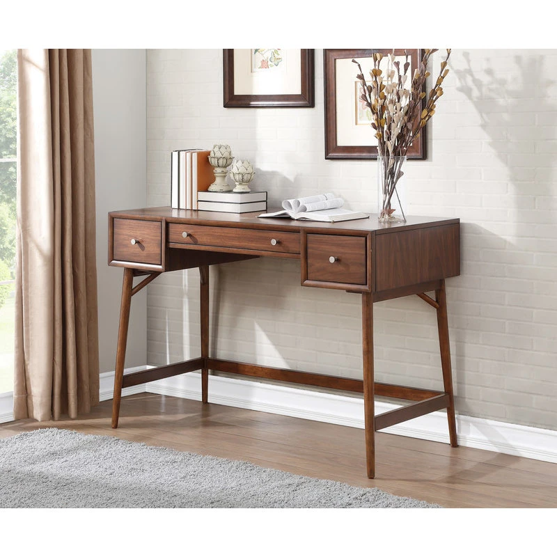 Providing functional use and retro-modern styling for your home is the Lenore Collection. The counter height desk, writing desk and 64-inch wide TV stand allow for perfect placement within your home to fit your individual needs. The brown finish combined with polished nickel knob hardware and a mid-century inspired profile, all blend effortlessly to create this stylish home collection. Also offered in Occasional.