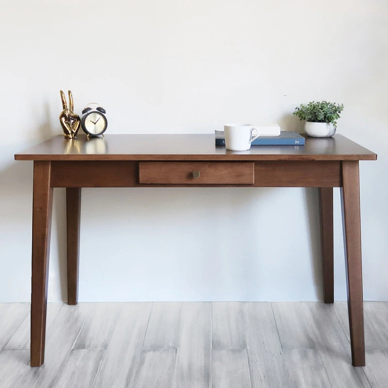 Inspired by mid-century designs, this classic, clean-lined writing desk is a solid keeper for any study. Desk is crafted from solid acacia wood in an elegant brown finish that complements most color palettes. Options of one or two drawers offer you the choice of look and storage amount you desire, while the expansive desktop provides great working space.