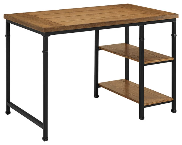 The Austin Collection features an industrial design and style that is on trend and easily versatile. The Two Shelf Desk has a spacious top and two shelves for displaying and storing a variety of work essentials. The Black Powder Coated Metal frame and Ash Veneer tops easily complete a variety of decor color schemes. Sturdy and durable construction.