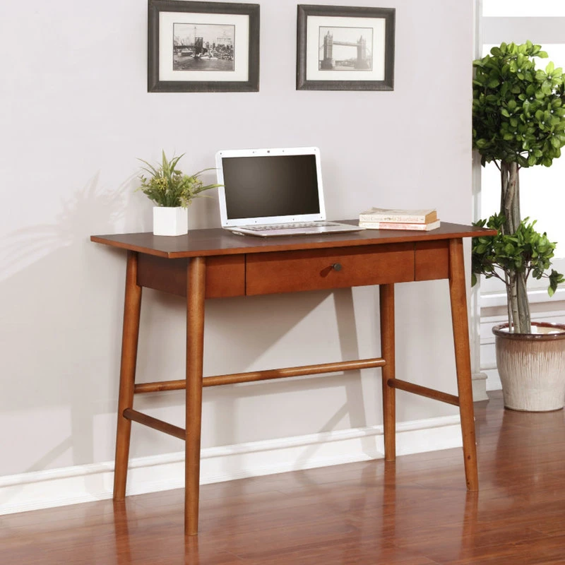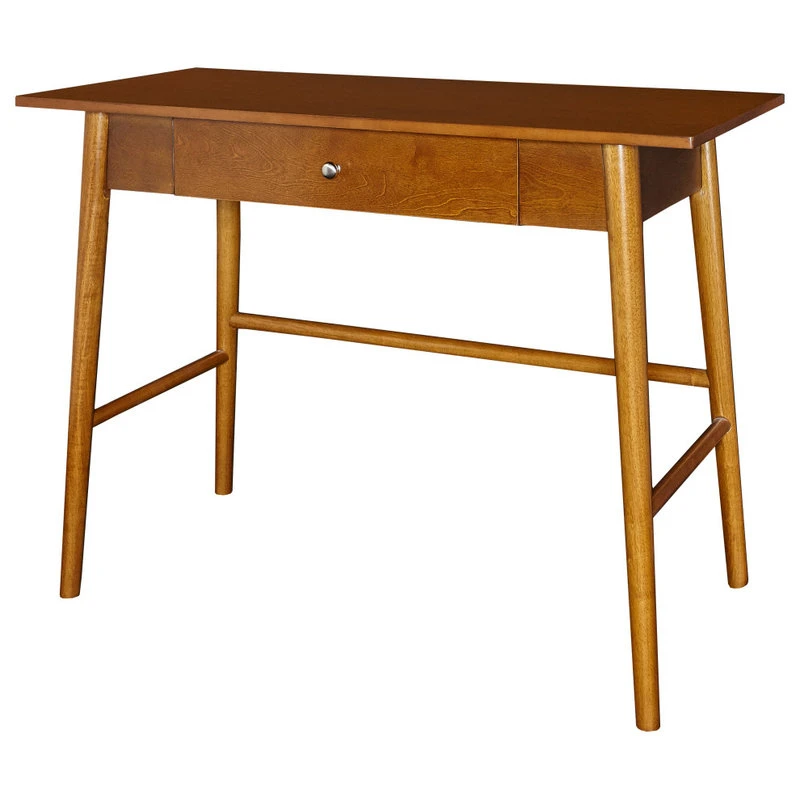 Add a touch of Mid-Century Modern style to your home with our Charlotte Desk. The sleek lined design is finished in a rich, warm brown. A single drawer is perfect for providing hidden storage space for supplies. Perfect for a home office or work area.