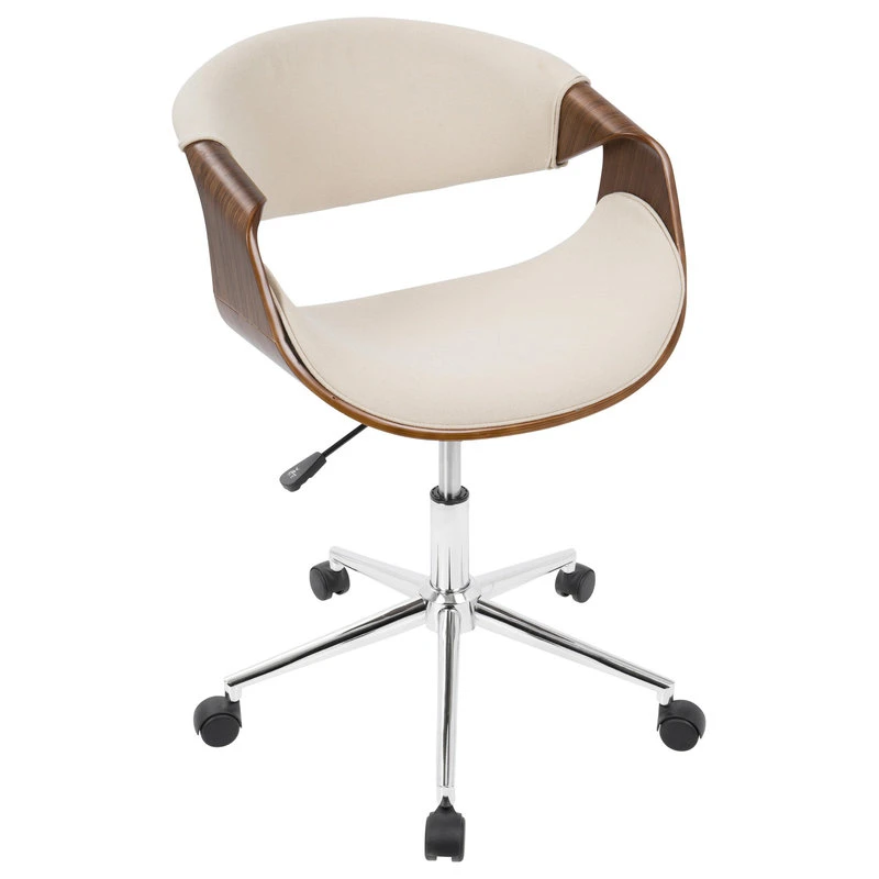 The Curvo Adjustable Office Chair proves that retro never goes out of style. The refreshing profile of this seat provides an open, airy look, while the curved wood accents and woven fabric upholstery add a modern flair. At least one thing is for certain: This piece will add interest to any home office.