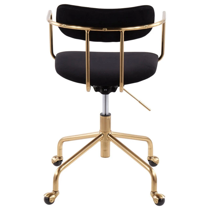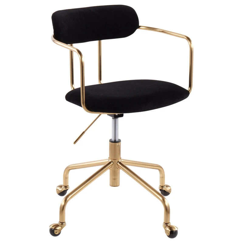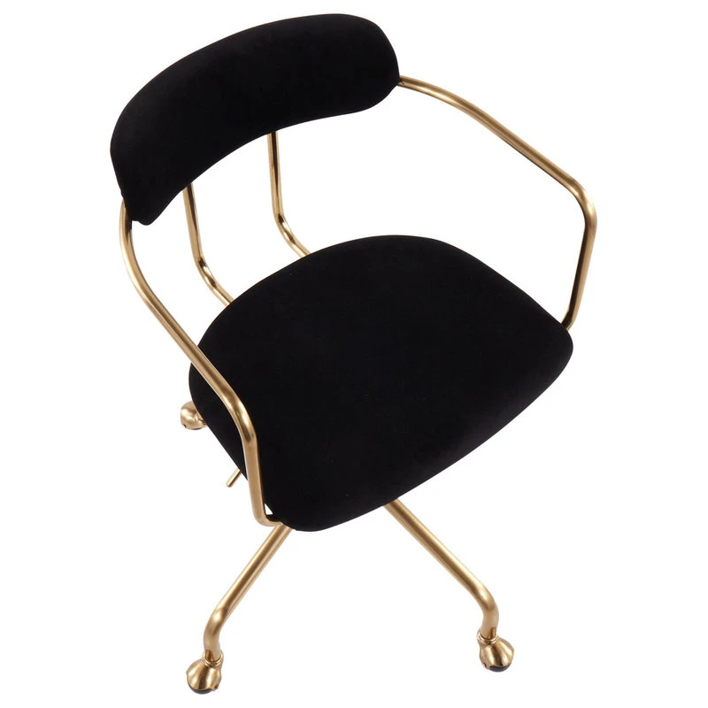 Lumisource Demi Office Chair, Gold Metal, Black Velvet