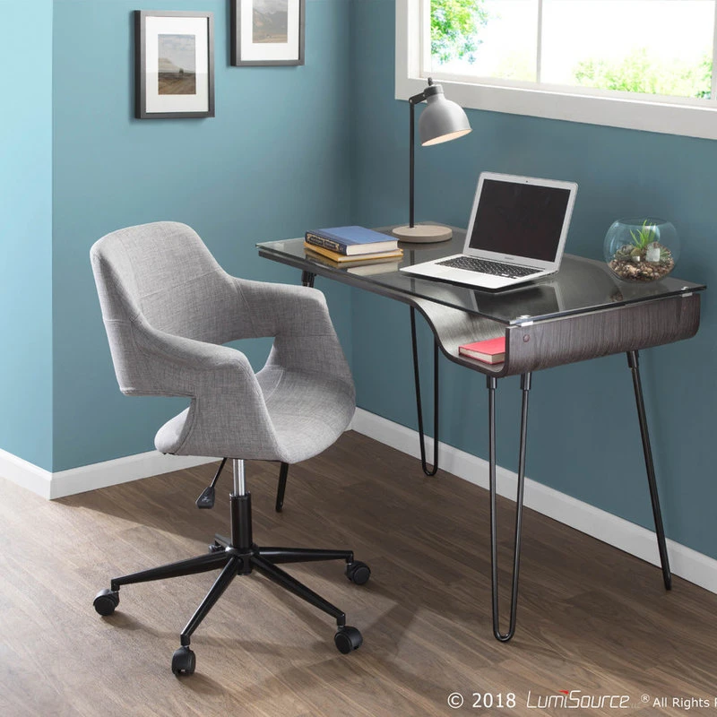 The Vintage Flair Office Chair is the perfect combination of retro chic and modern sophistication. The vibrant colored fabric and flared armrests make this chair an instant stand out piece unlike any other. Available in several colors, this chair will complete any office space.