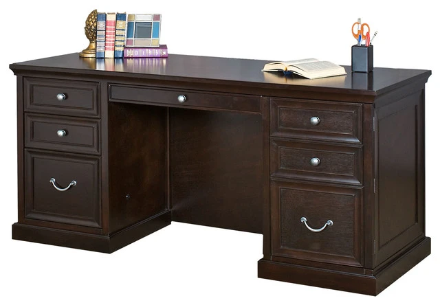 The Fulton Office Collection seamlessly blends the clean lines of the contemporary style with traditional elements like crown molding and picture frame detailing. Nickel hardware and a rich espresso finish make the Fulton Collection a design solution perfect for any home or office.