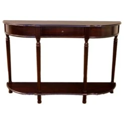 Add an elegant touch to any room with this traditional console table made from hardwood with a dark wood veneer finish. it includes a drawer, an open shelf and turned legs. it also features a sturdy cam lock and screw construction.