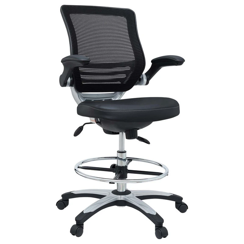 - One – Edge Office Drafting Chair with Foot Ring, Mesh Back and Black Leatherette Seat