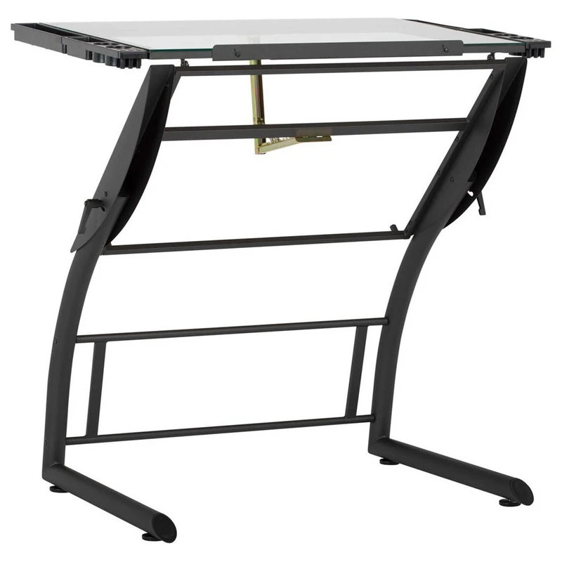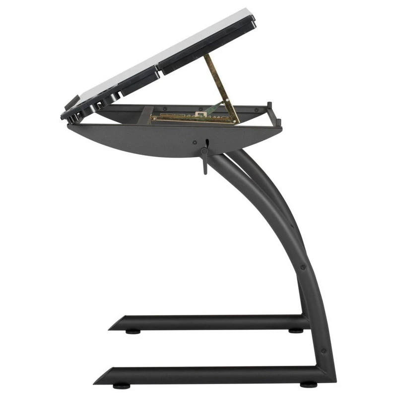 The innovative features of the TriFlex Drawing Table by Offex make it a unique addition to your office or Offex. The “Dual Tilt Design” adjusts from standard desk top height of 31″ to a standing desk height of 39.5″. The side handles allow you to lock into these positions for your various needs and projects. It also allows the tabletop to tilt up to 22 degrees in the standing position or up to 68 degrees in the sitting position. The near vertical tilt makes it the perfect art table when using art pencils or pastels. The dust and excess residue can effortlessly be wiped to fall on the ground. The ingenious versatility of this table makes it three desks in one. It can be used as a writing, drafting or stand up desk. Light Pad support bars can also be added to make it a light table, Sold Separately.