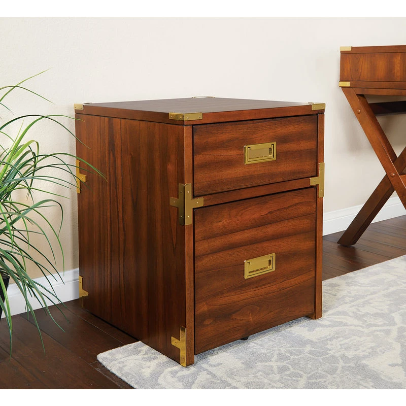 Keep track of all of your important documents with this campaign style file cabinet. Enjoy the timeless grace of metal hardware accents and classic detailing. A single file drawer provides room for letter or legal size files, while the extra storage drawer offers space for office supplies. Stay organized with the OSP Designs Wellington 2 drawer file cabinet. Noting weight capacity up to 50lbs