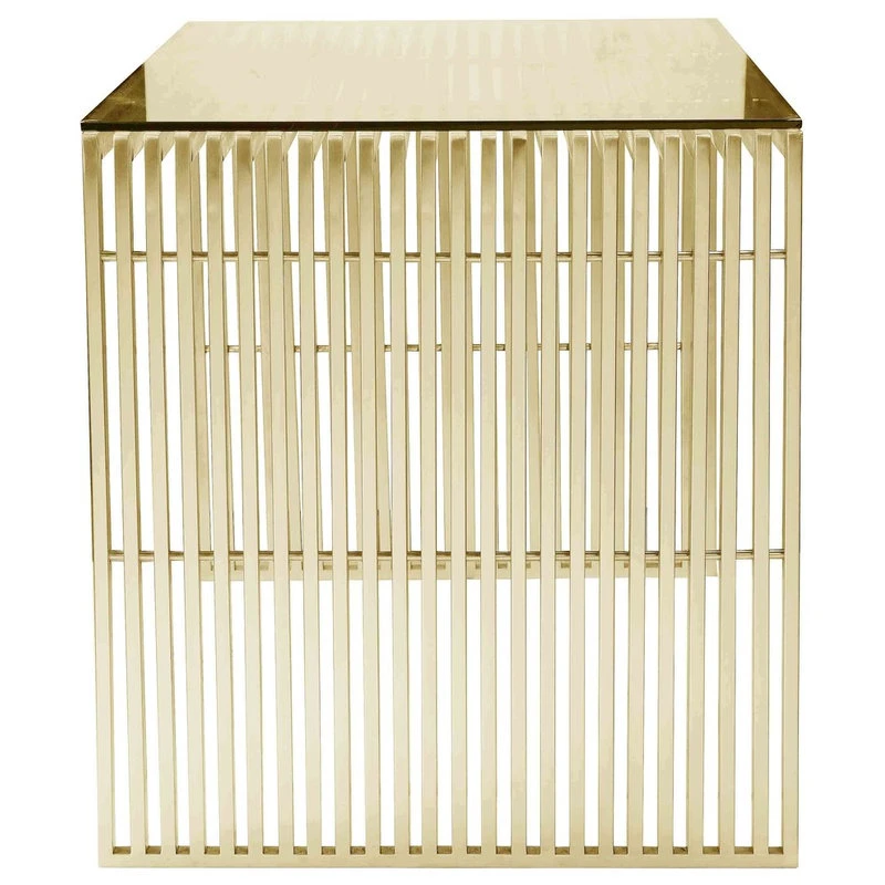 Cool modern brushed gold steel desk with tempered glass top; edgy and modern.