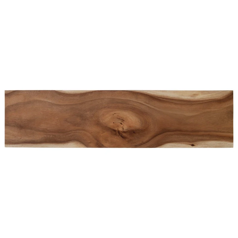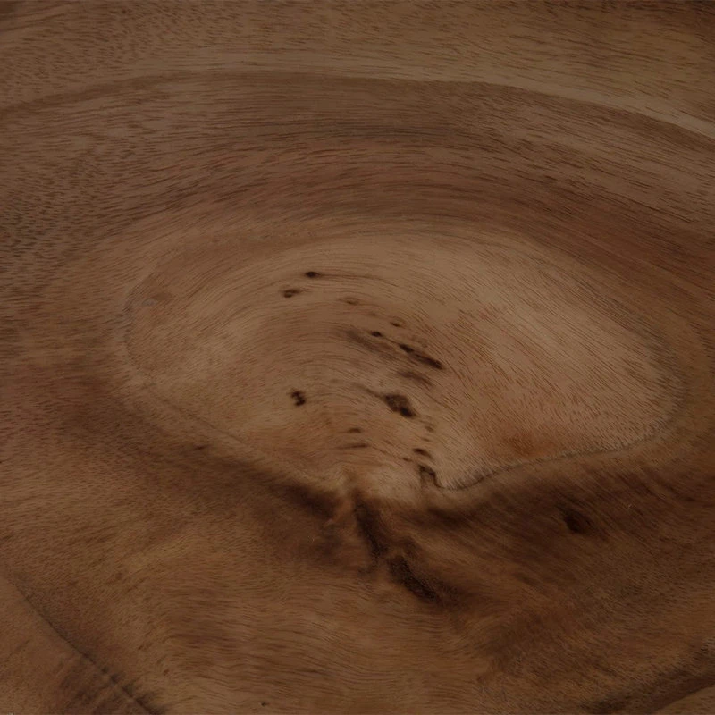 The perfect blend between organic and contemporary, the Geometry tables are crafted from solid slabs of acacia wood over a matte black iron base. Clean lines and a diagonal division between materials makes these natural wood tables modern and dynamic. Available in six sizes.