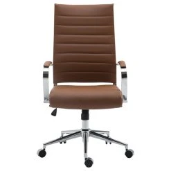 Lift the aesthetic of your home or office with a stylish and well-built management office chair. A selection of vegan leather colors offers upholstery that brings a sophisticated touch. Enjoy ergonomic benefits with a tension-controlled tilted seat and adjustable seat height. Padded arm rests and a high back round out the comfort details and make this an excellent choice.
