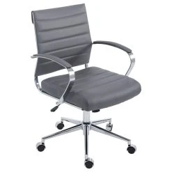 Lift the aesthetic of your home or office with a stylish and well-built task chair. A selection of vegan leather colors offers upholstery that brings a sophisticated touch. Enjoy ergonomic benefits with a tension-controlled tilted seat and adjustable seat height. Padded arm rests round out the comfort details and make this an excellent choice.
