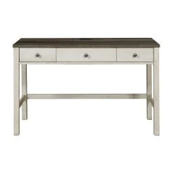 Riverwood has the look and feel of wood, executed in a durable resin laminate. Dark tops contrast with the lighter gray tones for interest and a modern farmhouse appearance. This desk features three drawers giving you storage space for supplies and a USB port to keep devises charged. The collection works perfectly for a home office, for a kid’s room or a welcoming spare room.