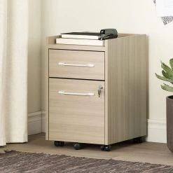 Decor Love Mobile File Cabinet, Lockable Design With Drawers & Metal Pulls, Soft Elm