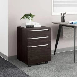 EFurnish Filing Cabinet, Mobile Design With 3 Lockable Drawers, Hansen Cherry/Galaxy