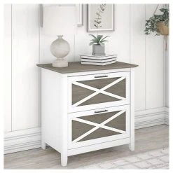 Decorn Transitional File Cabinet, 2 Storage Drawers With X-Shaped Front, Pure White Oak