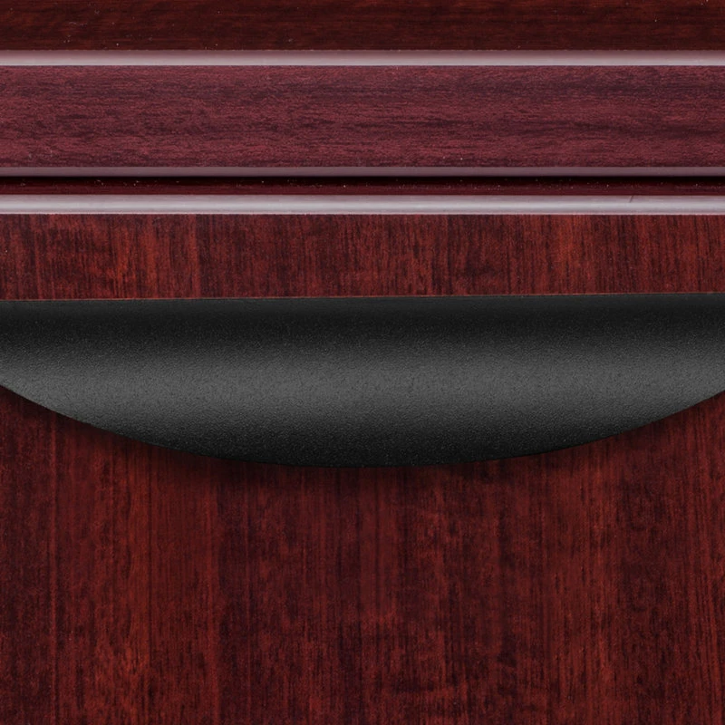 The Legacy Storage Collection offers it all from combo files and bookcases to stackable storage and laterals. This Box-Box-File Pedestal offers classic filing and storage for any office environment. It attaches seamlessly to any Legacy desk shell, Reception Desk, L or U Desk. It has two box drawers and one file drawer that accepts both letter and legal filing. All drawers lock and have ergonomically designed drawer pulls for convenience and ease in operation. Finished in a classic Mahogany laminate, storage components coordinate with other Legacy furniture which makes customizing easy. The Legacy collection is constructed of a 1-inch thick thermal fused melamine laminate with a 3-millimeter commercial grade matching PVC edge. Laminates are scratch, stain and scald resistant. Legacy casegoods are backed by a 10-year limited manufacturer’s warranty.